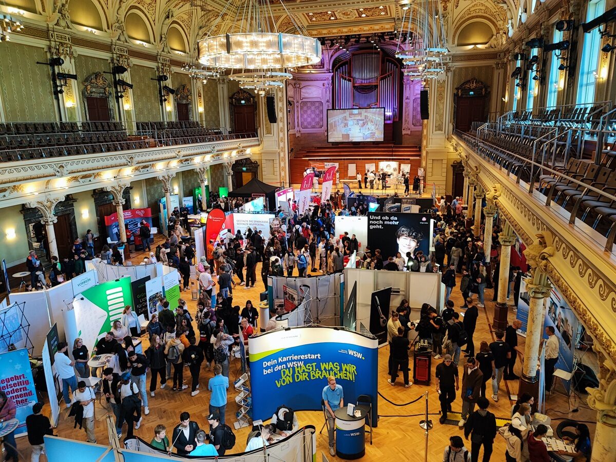 Im September findet die große Wuppertaler Ausbildungsbörse wieder in der Historischen Stadthalle statt. Es ist bereits die 35. Ausgabe des beliebten Formats, das sich im jährlichen Terminkalender von Betrieben und Schulen einen festen Platz reserviert hat. Um die 120 Unternehmen aus Wuppertal und der Region heißen ausbildungsinteressierte Schülerinnen und Schüler willkommen. Ausbildungsleiter*innen und Azubis geben Infos über Berufs- und Einstiegsmöglichkeiten aus erster Hand an die Jugendlichen weiter, stellen ihre Betriebe vor und lernen den Nachwuchs von morgen kennen. Viele Betriebe bringen auch kleine, berufstypische Übungsaufgaben mit, bei denen die Jugendlichen ihr Geschick testen können. Das Spektrum der teilnehmenden Unternehmen reicht von Handwerk über Pflegeberufe und Dienstleistung bis zur Metall- oder IT-Branche.