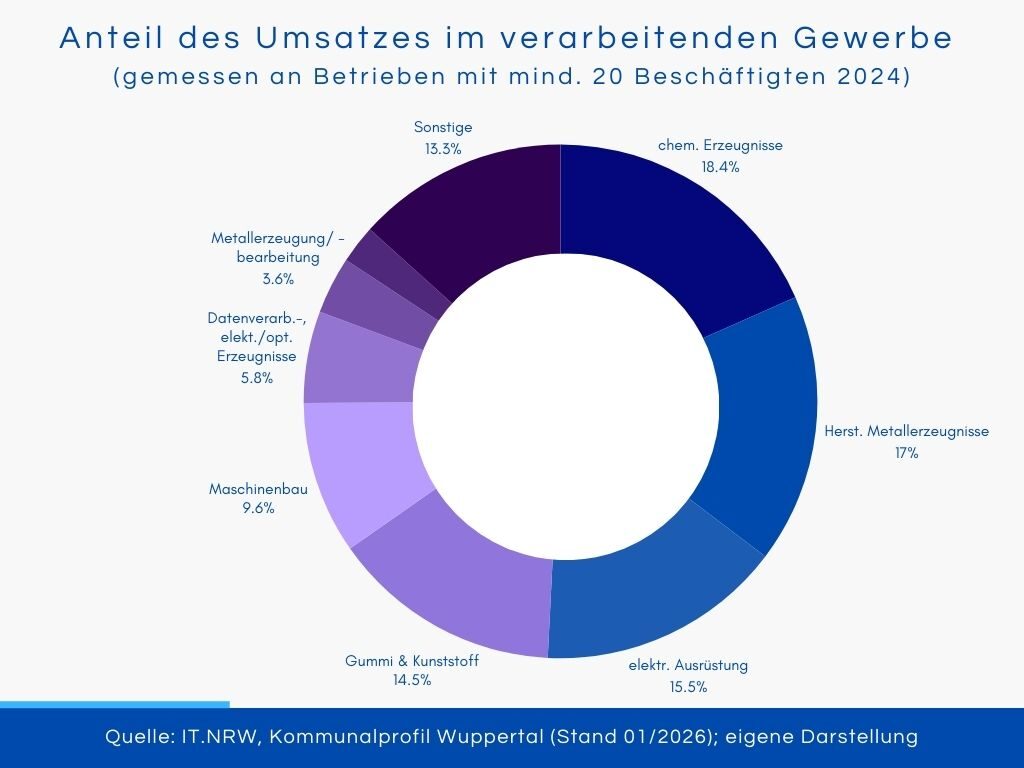 Wuppertal hat sich vom traditionsreichen Ort der Frühindustrialisierung zum modernen Wirtschaftsstandort gewandelt, wo Zukunftsthemen angepackt werden wie Kreislaufwirtschaft (Circular Valley), Mobilität der Zukunft oder Smart City Anwendungen.