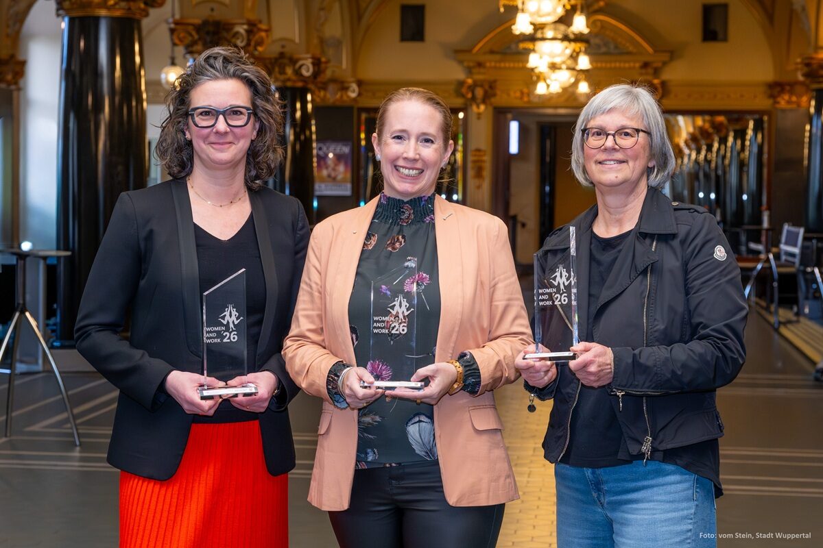 Zum zwölften Mal wurden im Bergischen Städtedreieck drei besonders engagierte, vorbildliche Frauen für ihre Leistungen mit dem Preis „Frau mit Profil“ ausgezeichnet. Eingeladen hatte das Kompetenzzentrum Frau und Beruf Bergisches Städtedreieck, gemeinsam mit Oberbürgermeisterin Miriam Scherff aus Wuppertal, Oberbürgermeister Daniel Flemm aus Solingen und Oberbürgermeister Sven Wolf aus Remscheid. Knapp 150 Gäste verfolgten den Festakt in der Historischen Stadthalle Wuppertal.